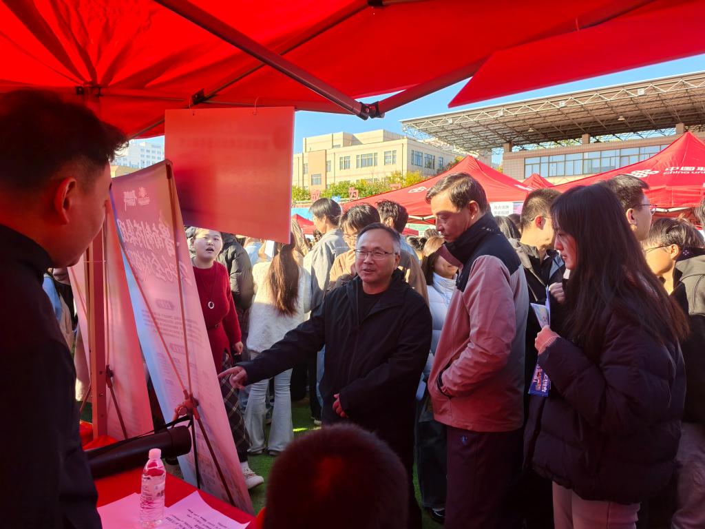 11月2日,我校2026届毕业生校园招聘会在体育场隆重举行。kaiyun登录中国入口登录党委高度重视,学院党委书记王付山、副书记武兵亲临招聘会现场,深入了解当前就业形势与企业需求,并与招聘企业代表、应聘学生进行了亲切深入的交流。