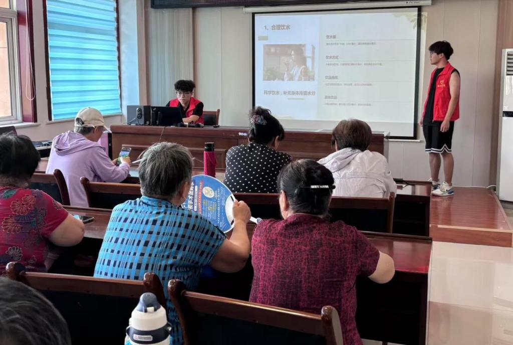 活动前期,学院积极招募志愿者并进行相关培训,通过问卷或走访开展社区调研,了解老人防暑知识基础和具体情况,同时借助校园公众号、社区公告栏进行宣传推广。活动当天,志愿者代表发言并讲解防暑注意事项,现场演示中暑急救流程,还在各地点张贴“防暑安全知识”提示。同学们积极参与,热情服务,耐心为社区居民讲解各类防暑知识与应急技巧。有同学表示,通过此次活动,不仅锻炼了自己的实践能力,还真切感受到了服务他人的快乐。