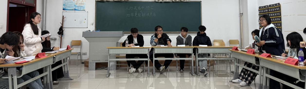 10 月 30 日至 31 日,学院选拔出的精英辩论队在明理楼323教室开启关键角逐。本次赛事聚焦社会热点与学生成长,设置四大辩题:“社交媒体增进还是疏远了人际交往”“短视频的流行提升还是降低了大众认知水平” 紧扣当下数字生活现实,引发对科技与人文关系的深度思考;“当代大学生应当深耕专业还是拓宽视野”“人际关系中隐忍还是坦率更能解决问题” 则直击学生成长核心议题,兼具实用性与思辨价值。