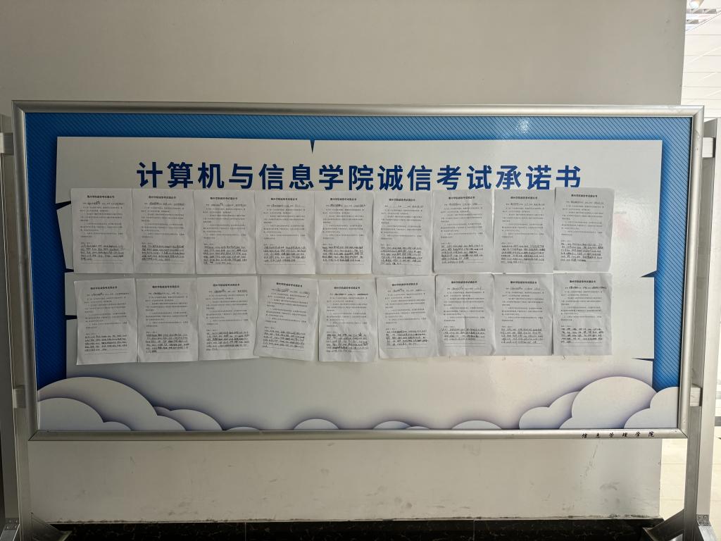 二是加强学生考风考纪巡查管理。学院组建了由书记和院长任组长的学院诚信考试工作领导小组,并制定了《2023-2024-2学期期末考试巡考安排》,考试期间,加大值班值守和巡考力度,全体领导班子成员配合学校巡查组,加强对考风考纪的巡查,确保第一时间掌握考情和报送考务信息。