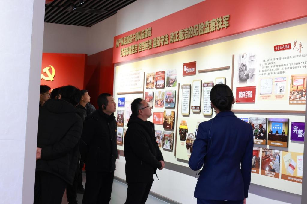 在德州市廉政教育馆,全体人员依次参观学习了“忆心”“问心”“警心”“正心”等主题展厅,通过图文展示、多媒体展播、沉浸式场景体验等多种方式,深入学习了党的纪律建设历程。全体党员重温入党誓词,以铮铮誓言表达了愿为党的事业奋斗终身的信心和决心。