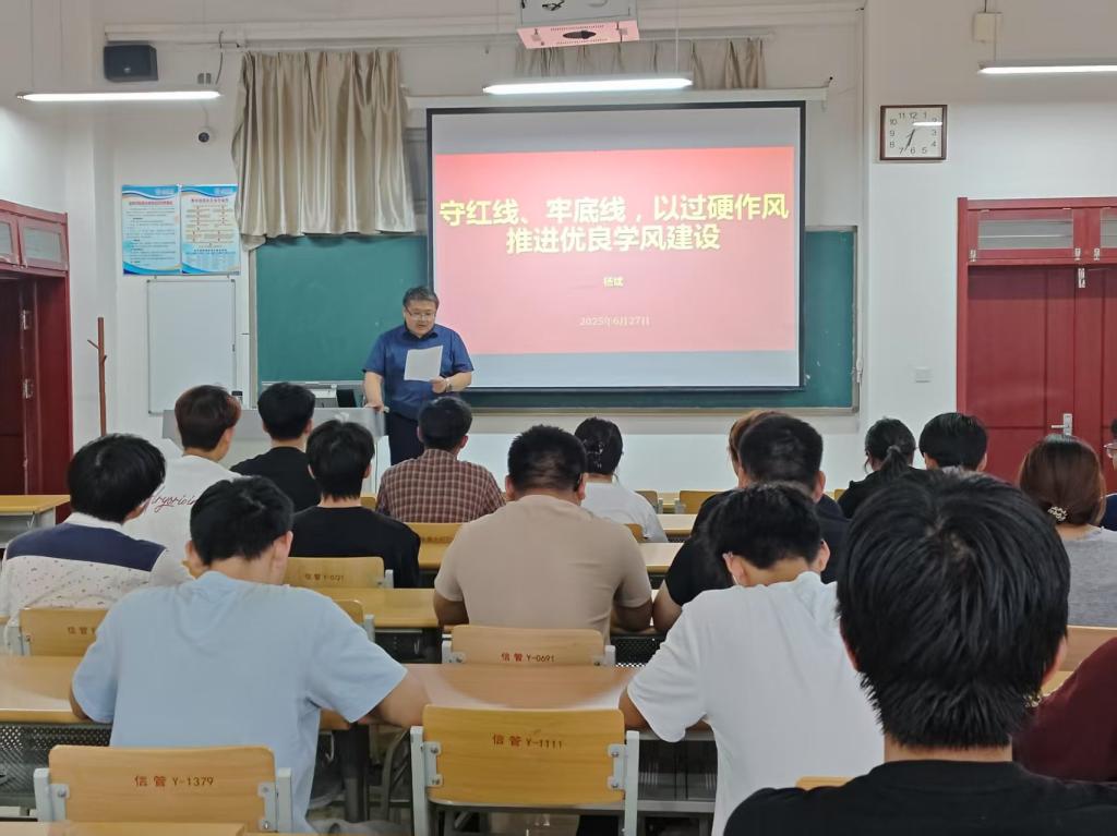 为深化学生思想政治教育,进一步强化学生纪律意识,营造风清气正的学风氛围,2025年6月27日,校党委委员、组织部部长杨斌走进联系班级kaiyun登录中国入口登录2023级软件工程(智能开发)二班,以“守红线、牢底线,以过硬作风推进优良学风建设”为主题,为同学们带来了一堂生动且意义深刻的思政课。