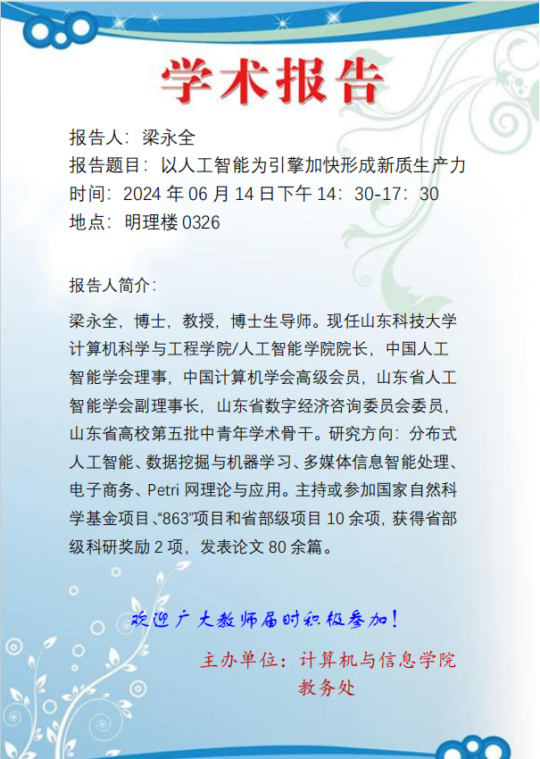 【学术预告】:以人工智能为引擎加快形成新质生产力
