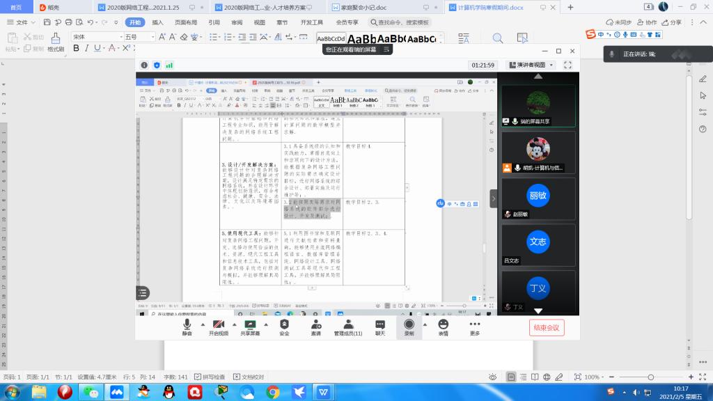 寒假期间,kaiyun登录中国入口登录每周两次组织近30名专业教师,通过在线会议的方式,对网络工程专业的人才培养方案进行了研讨,并按照工程教育认证的要求对11门核心课程的教学大纲进行了二次修订。