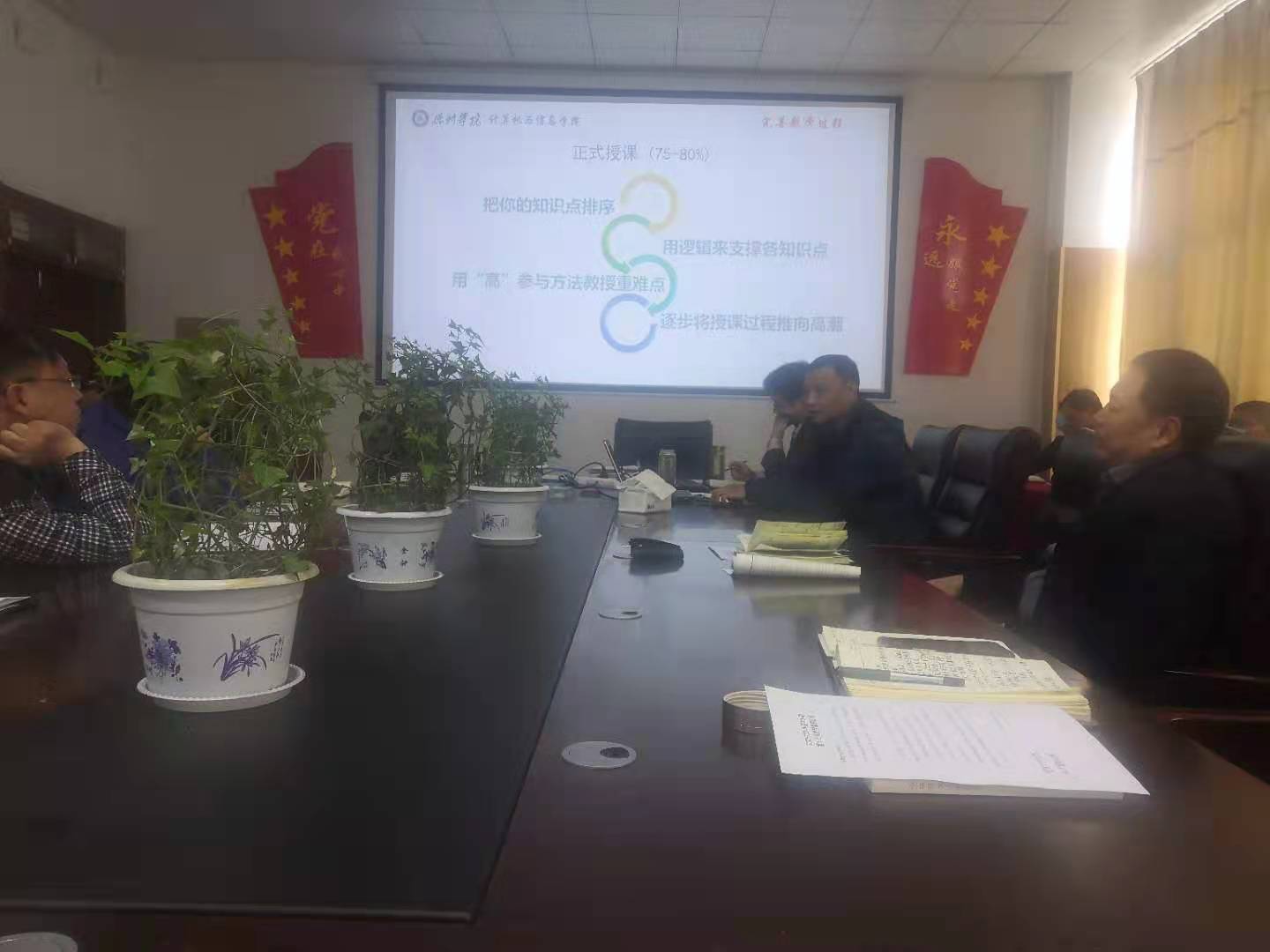 武兵副书记的报告从“把握教学规律、完善教学过程和提升教学质量”三个方面讲述了如何上好一堂课;沙焕滨老师的报告从“如何让学生喜欢你的课程、提高课堂的听课效率”的角度分享了授课过程的经验。参会的教师针对教学现状,就课堂秩序的管理、教学方式的灵活应用、教师的教与学生的学之间的协调统一、教学过程中教师如何做到“教师眼中有学生、学生眼睛关注教师”、学生如何做好课堂笔记提高课堂效率等问题进行了热烈的讨论。