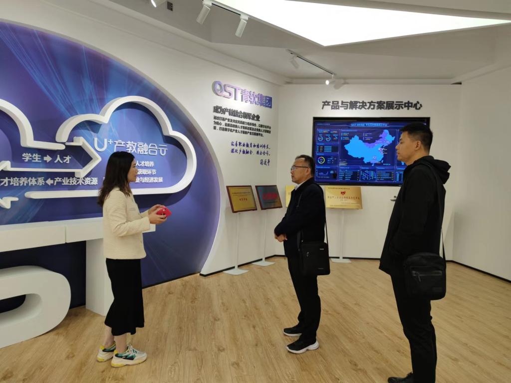 学院负责人与企业开展座谈交流,介绍学院学科专业设置、师资科研力量、人才培养模式等情况,分别对学生实习就业安排、项目合作进行了磋商。