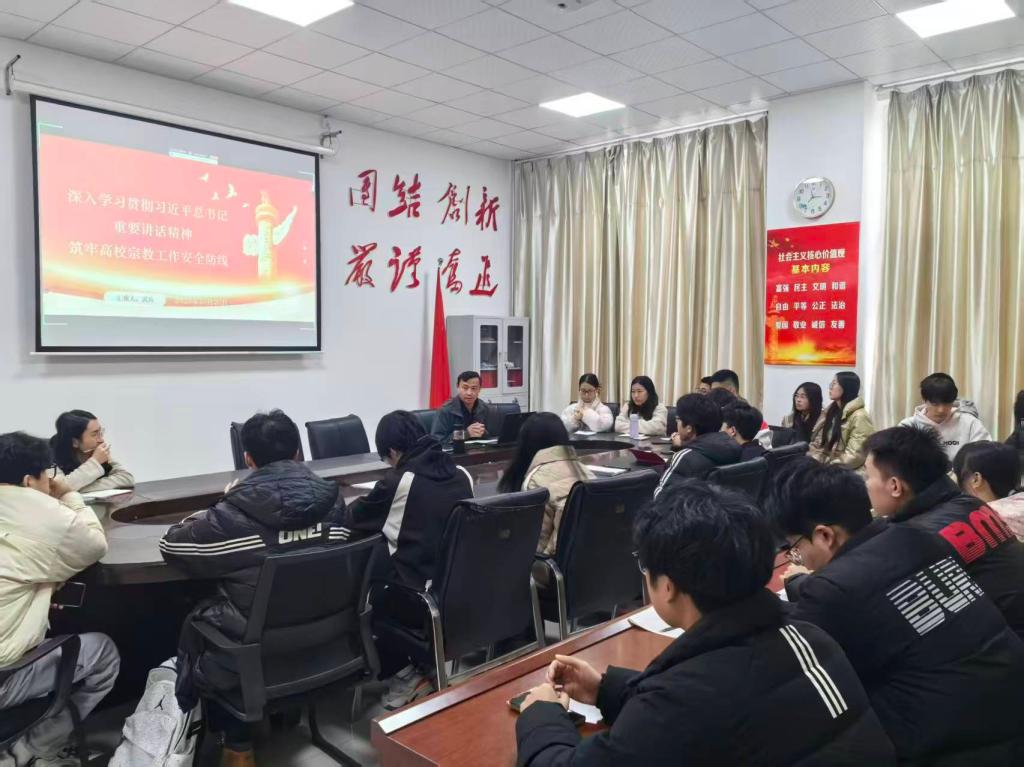 党课围绕四个部分展开。首先,武兵带领大家深入学习领会了习近平总书记关于宗教工作特别是推进宗教中国化的重要讲话精神,强调了坚持我国宗教中国化方向的重大意义。随后,他重点阐述了学生党员和入党积极分子在维护校园意识形态安全、防范宗教向校园渗透中的特殊职责与使命,明确了具体的行动要求。在实践路径部分,武兵提出了清晰的工作思路与举措,要求支部成员提高政治站位,明确三个坚决反对,落实四项具体举措。最后,他进行总结并发出号召,希望全体学生党员和入党积极分子坚定理想信念,争做维护校园和谐稳定的排头兵,共同构筑起坚不可摧的高校宗教工作安全防线。