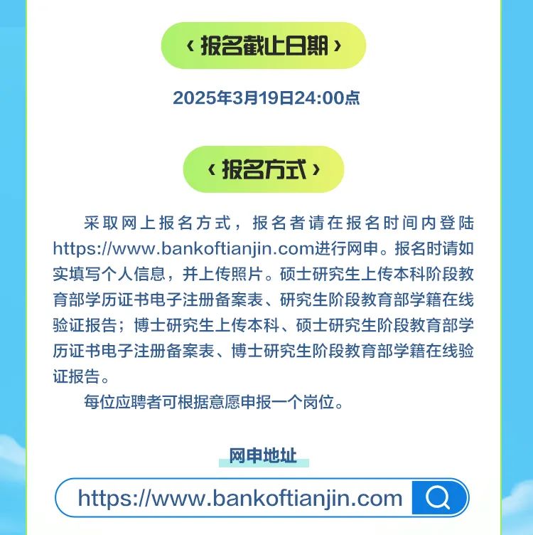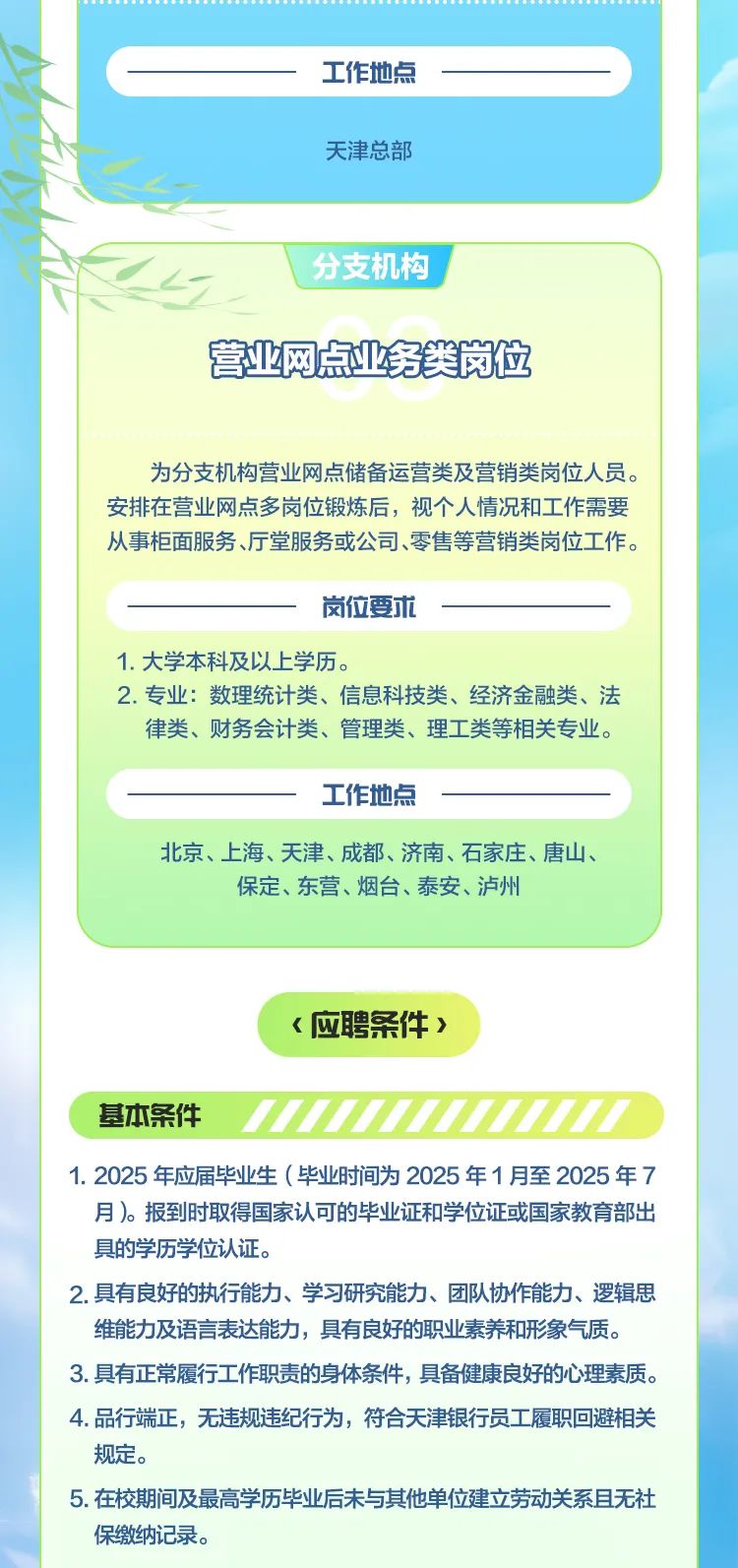 岗位速递:招聘信息|天津银行2025春季校园招聘正式启动