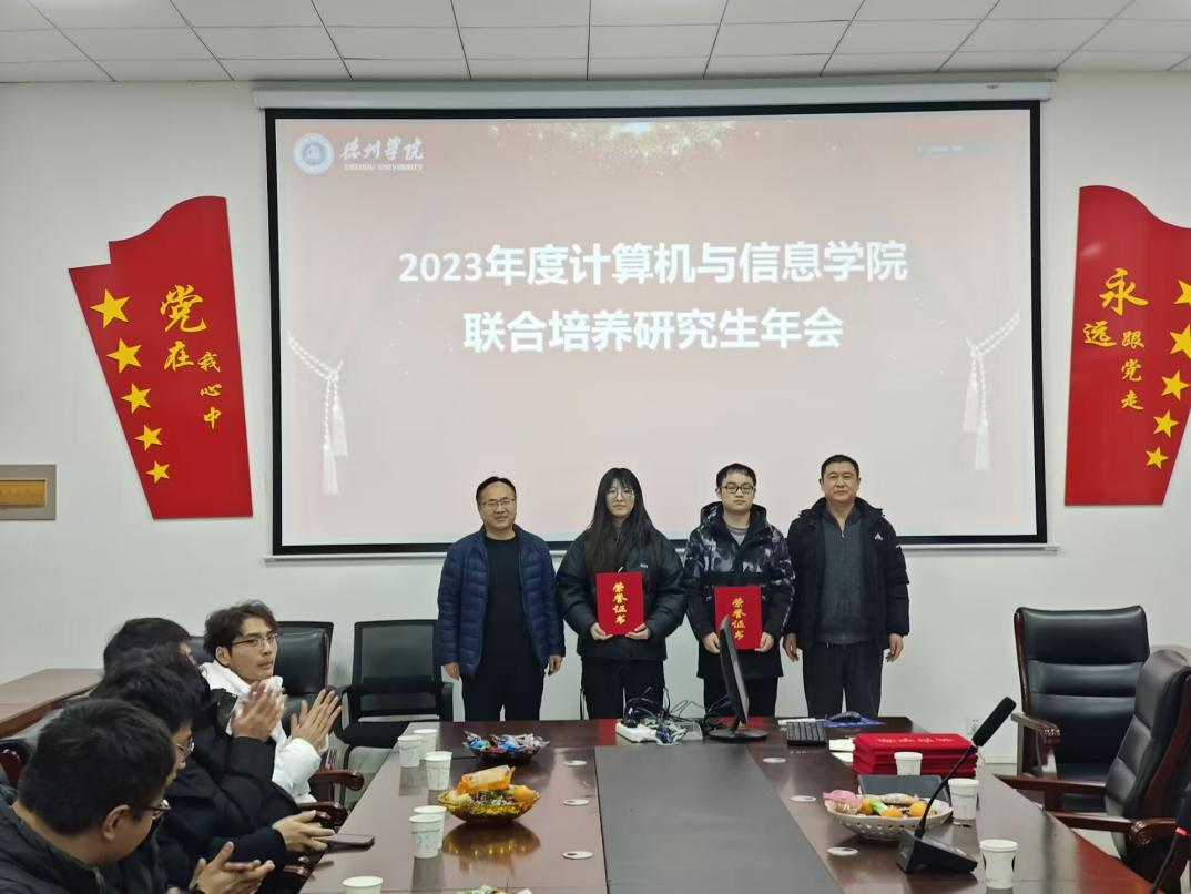 本次年会旨在表彰2023年以来科研成果突出、表现优异的研究生,同时,促进研究生之间的交流与合作、提高学术研究水平、增进师生之间的交流与沟通。会议包括颁奖仪式、师生座谈交流和研究生、本科生代表表演节目三个部分。设立了三个奖项:勤奋奖、进步奖和潜力奖,分别表彰出勤率最高学习最认真的同学、进步较快的同学和具有科研潜质的同学,奖项是由师生共同投票产生。学院负责人一一为他们颁发了奖项。